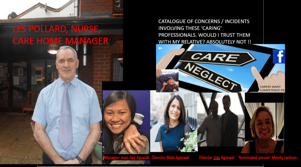 “When Les pollard (qualified nurse) was manager at Amberley Hall Care Home. There was an incident that resulted in Les wanting to lock a dementia resident (Beatrice Seaman) in her room at night.