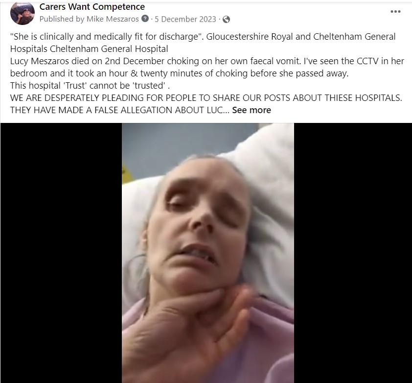 Lucy’s death could have avoided if I had not been prevented from providing care for her due to a fabricated completely untruth from Gloucestershire hospitals NHS.